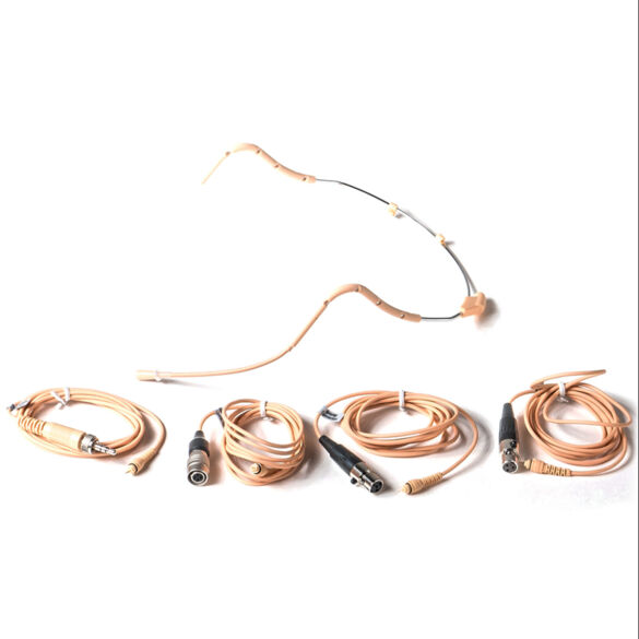 # Apex Electronics 570T# Micro serre#tête # Référence fabricant : APEX570T # Coloris : Couleur chair # Maintien sécurisé # Adapté aux performances dynamiques # Type : Condensateur électret arrière # Directivité : Omnidirectionnelle # Réponse en fréquence : 50 Hz ⭢ 18 kHz # Sensibilité : #60 dB # Impédance : 1500 Ω @ 1 kHz # Alimentation fantôme requise : 1 – 10 V DC # Câbles détachables (1,5 m) + Connectiques fournis : # Mini XLR 3 broches femelle TA3F (type AKG) # Mini XLR 4 broches femelle TA4F (type Shure) # mini#Jack TRS ∅3,5 mm, verrouillable, 8523 (type Sennheiser) # Lemo 4 broches femelle, verrouillable, AT 8521 (type Audio Technica) # Adaptateur Mini#XLR ⭢ XLR fournis # Poids : 8 g (sans câble)