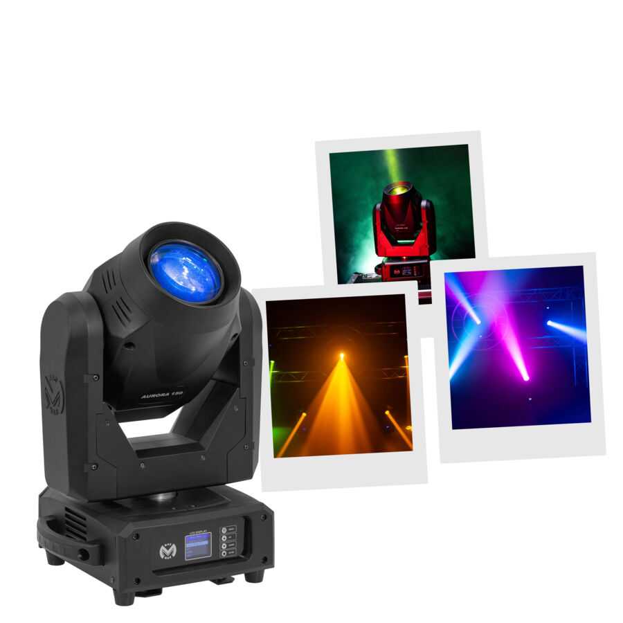 Mac Mah Aurora 150 BSW : lyre LED 150 W 3-en-1 avec Zoom, Gobos, prisme, Frost et Strobe. Contrôle DMX, auto. Polyvalence maximale sur scène.