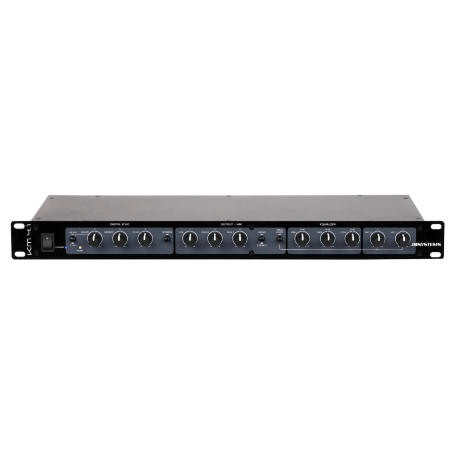 - Egaliseur à 3 bandes sur chaque entrée micro