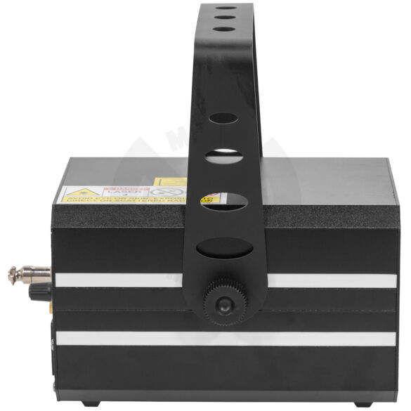 - Mac Mah MAC 1000 RGB - Sources lumineuses : diodes LASER (R 300 mW / 638 nm G 80 mW / 520 nm B 1 000 mW / 450 nm) - Class 4 - Clé de protection - Boîtier en aluminium - Interface ILDA entrée et sortie - Faisceau LASER de 3 mm de diamètre - Système ''Scan Fail Safety'' qui coupe le LASER automatiquement en cas de défaut des moteurs des miroirs. - Scans Galvo 20 KPPS - Modes automatique / détection sonore / DMX - Canaux DMX : 16 / 36 - 200 programmes autos - Tension d'alimentation : 100-240 VAC / 50-60 Hz - Boîtier en 2 parties, pour la protection des composants sensibles à la poussière (ATS Technology) - Consommation électrique : 50 W max. - Dimensions: 183 x 132 x 115 mm - Poids : 1,5 kg - Bouton d'arrêt en option DANGER # RAYONNEMENT LASER EXPOSITION DANGEREUSE DE L'ŒIL OU DE LA PEAU AU RAYONNEMENT DIRECT OU DIFFUS APPAREIL A LASER DE CLASS 4