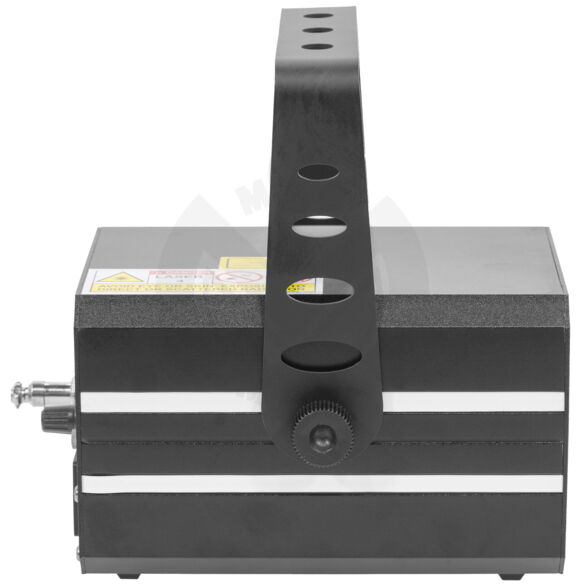 - Mac Mah MAC 3000 RGB - Sources lumineuses : diodes LASER (R 600 mW / 638 nm G 800 mW / 520 nm B 1 500 mW / 450 nm) - Class 4 - Clé de protection - Boîtier en aluminium - Interface ILDA entrée et sortie - Faisceau LASER de 3 mm de diamètre - Système ''Scan Fail Safety'' qui coupe le LASER automatiquement en cas de défaut des moteurs des miroirs - Scans Galvo 20 KPPS - Modes automatique / détection sonore / DMX - Canaux DMX : 16 / 36 - 200 programmes autos - Tension d'alimentation : 100-240 VAC / 50-60 Hz - Boîtier en 2 parties, pour la protection des composants sensibles à la poussière (ATS Technology) - Consommation électrique : 50 W max. - Dimensions: 183 x 132 x 115 mm - Poids : 1,5 kg - Bouton d'arrêt en option DANGER # RAYONNEMENT LASER EXPOSITION DANGEREUSE DE L'ŒIL OU DE LA PEAU AU RAYONNEMENT DIRECT OU DIFFUS APPAREIL A LASER DE CLASS 4