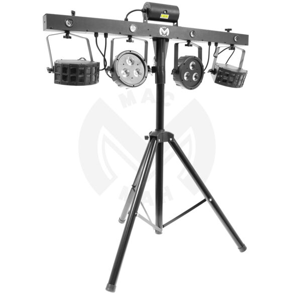 - Mac Mah Multi-FX Bar - Barre de jeux de lumière tout-en-un - 2 effets Derby avec 4 LED RGBW de 3 W - 2 effets PAR à LED avec 3 LED RGB-UV de 4 W - Lumière UV - 1 LASER multipoint rouge 100 mW et vert 50 mW - 1 effet Strobe avec 4 LED blanches de 2 W - Sac pour le transport du pied + sac pour les jeux de lumière - Modes de fonctionnement : DMX, automatique, détection musicale, télécommande sans fil - Canaux DMX : 3 ou 26 canaux - Largeur de la barre : 1 m - Hauteur maximale du pied : 2,20 m - Alimentation : Secteur 240 VAC / 50-60 Hz - Dimensions : - Poids net :