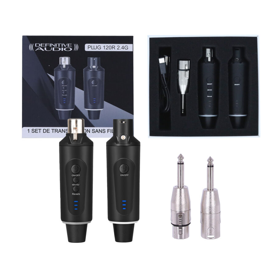 - Set de transmission sans fil 2.4G- Gamme de fréquences porteuse : 2.4G- Connectiques XLR- Idéal pour micro main- Fonctionne avec des micros dynamiques ou statiques- 3 types de Réverbérations intégrées- Alimentation fantôme 48V - Gamme de fréquence : 50HZ-15KHZ- Puissance de sortie RF : 10 dB- Portée : environ 50M (selon l’environnement)- Indicateur à LEDs- Batterie lithium 3.7V/500 mAh- Autonomie : environ 8h- Dimensions : 16 x 5 x 14.5 cm- Poids : 0.35 Kg